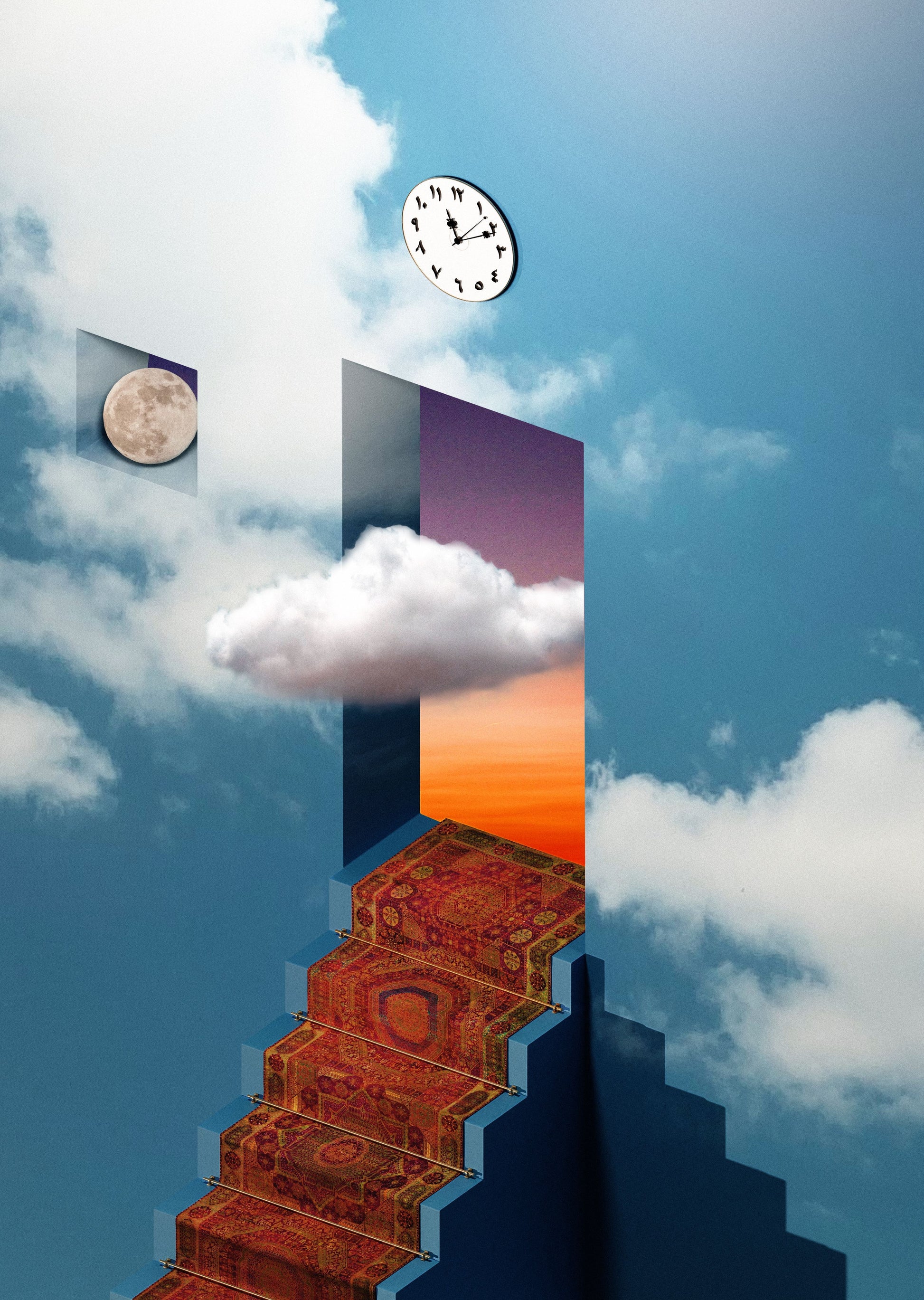 “Till next time, Al marra al jaya”, Rayan portrays a journey between universes. The artwork showcases a travelling cloud, symbolising gradual movement and transition. Through meticulous detail, viewers are immersed in a serene and contemplative atmosphere.
